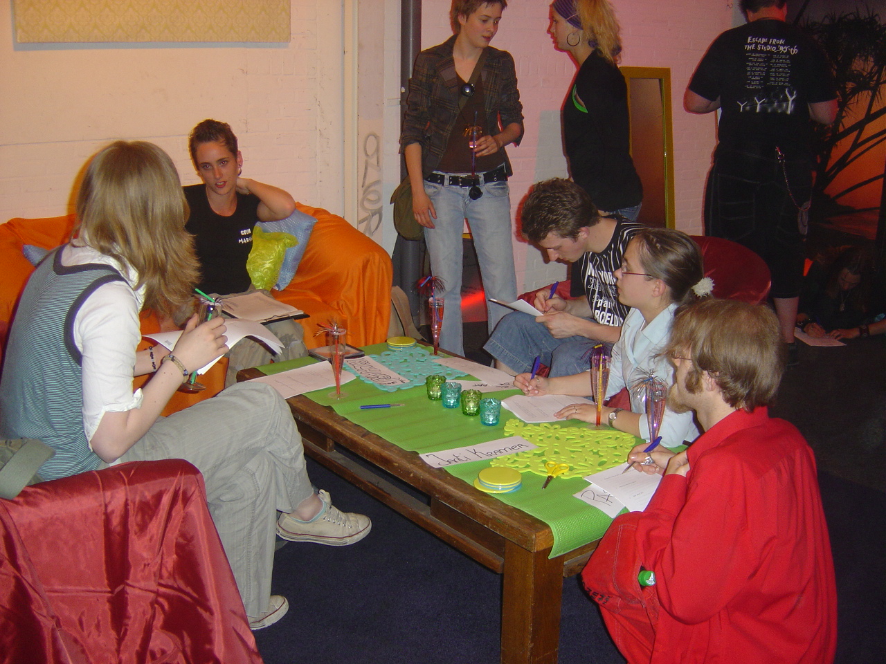 Zoals deze foto’s laten zien was ook de voorbereiding van dit project een flinke klus. Zo werd i.v.m. de filmopnames de plafond van de ‘Hall of Fame’door de studenten zwart geschilderd. Dat mocht de onderlinge lol zeker niet drukken.